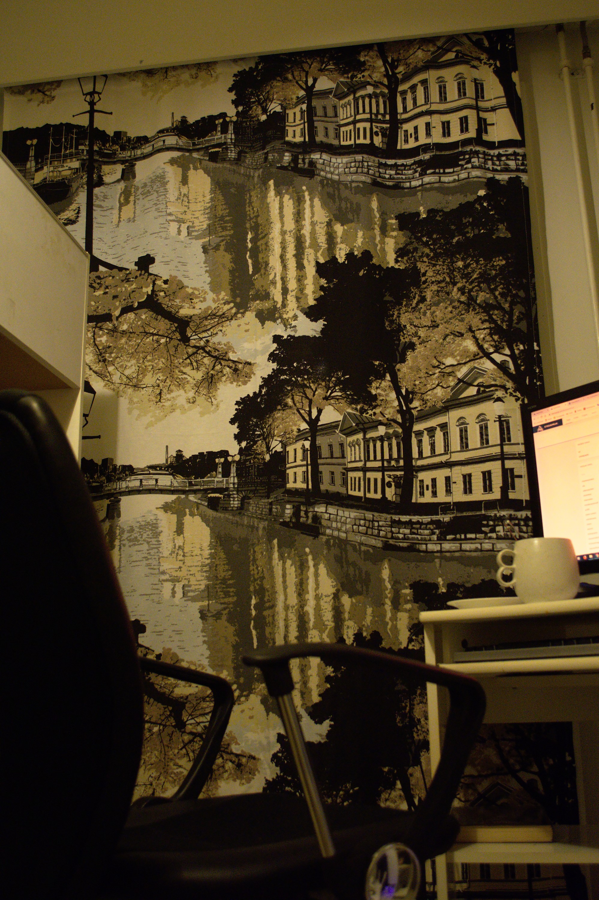 Furthermore, the posters I mentioned – I did take them away a while ago and left that drawing alone to the wall above my bed. This drawing has kind of an interesting history, because it was sold by some Polish artist who was going door-to-door selling his(?) drawings (I don't actually remember for sure whether it was a man or a woman).