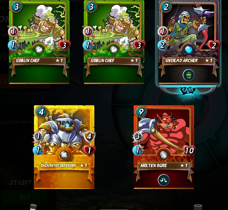 Spent 50,000 DEC on 20* Promo packs chey (53)in #undefined • 7 years ago Got me a GF Enchanted Defender on my 2nd orb. I think I will get me an Alchemy Charge Potion for the rest of my promo packs. 10 left to go!!! #splinterlands #steemmonsters #fun #steem