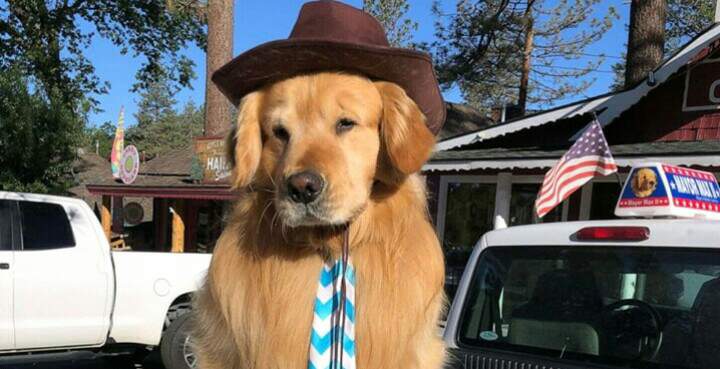 Mayor Max II of Idyllwild, California sits in the back of his pickup truck, wearing a tie and hat, barking his greetings to locals. He’s not your average mayor.
