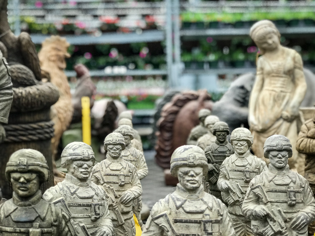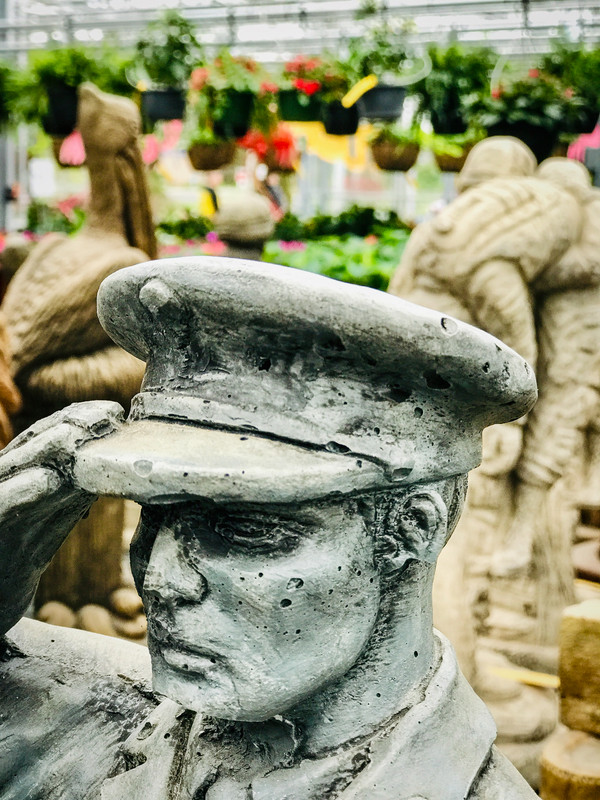 Some interesting cast-concrete lawn ornaments at a nursery in Central New Jersey.