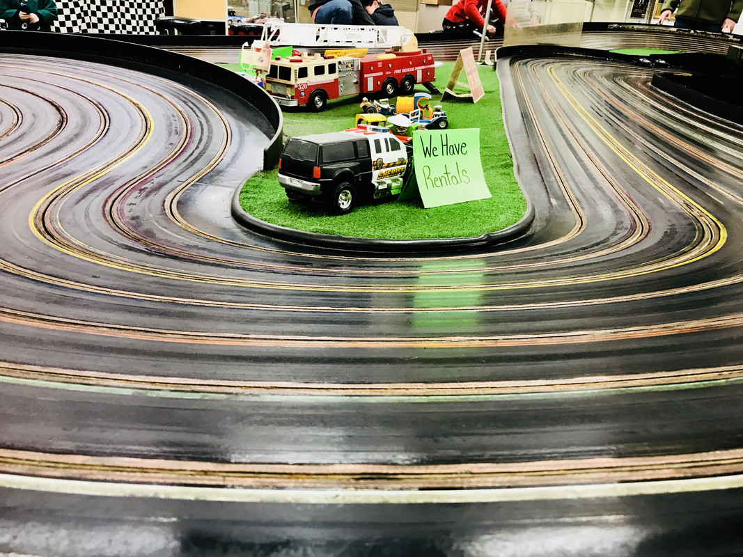 Slot car racing at Race Place Hobby Shop in the Quakertown Farmers Market.