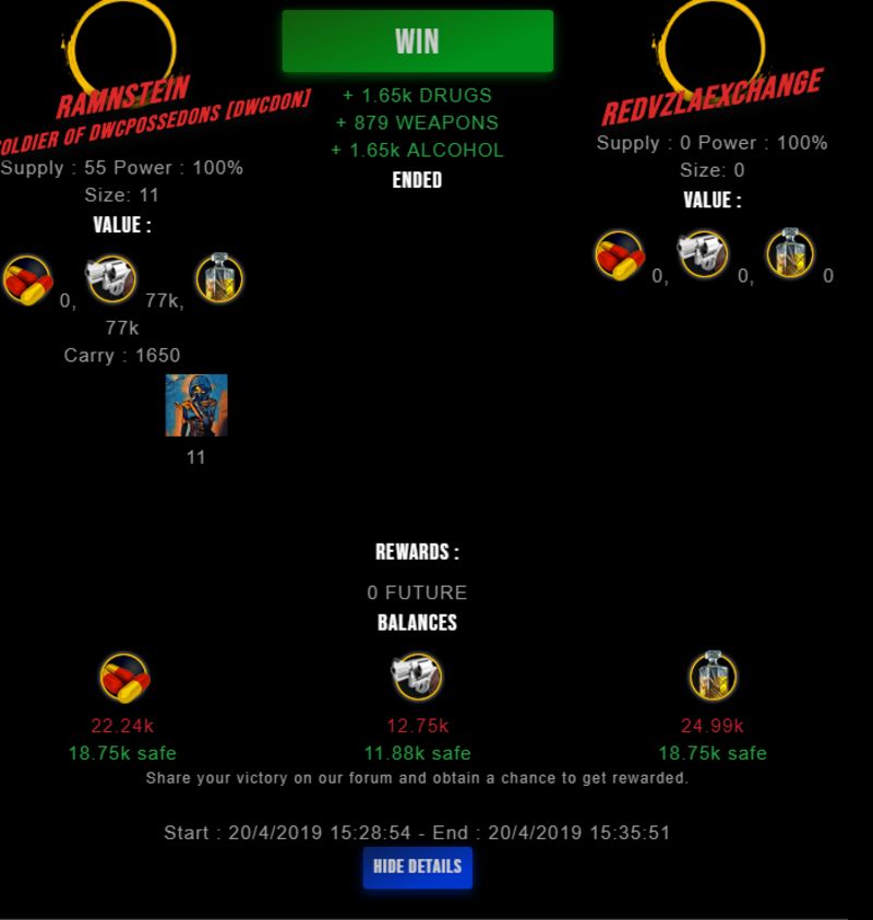 Check my latest fight ! ramnstein vs redvzlaexchangecoliraver (62)in #undefined • 7 years ago #drugwars-fight #gaming #fight #dw