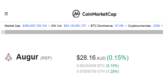 I just noticed that someone bought/sold Augur Crypto Coin for $1 on an Australian Crypto Exchange Independent Reserve