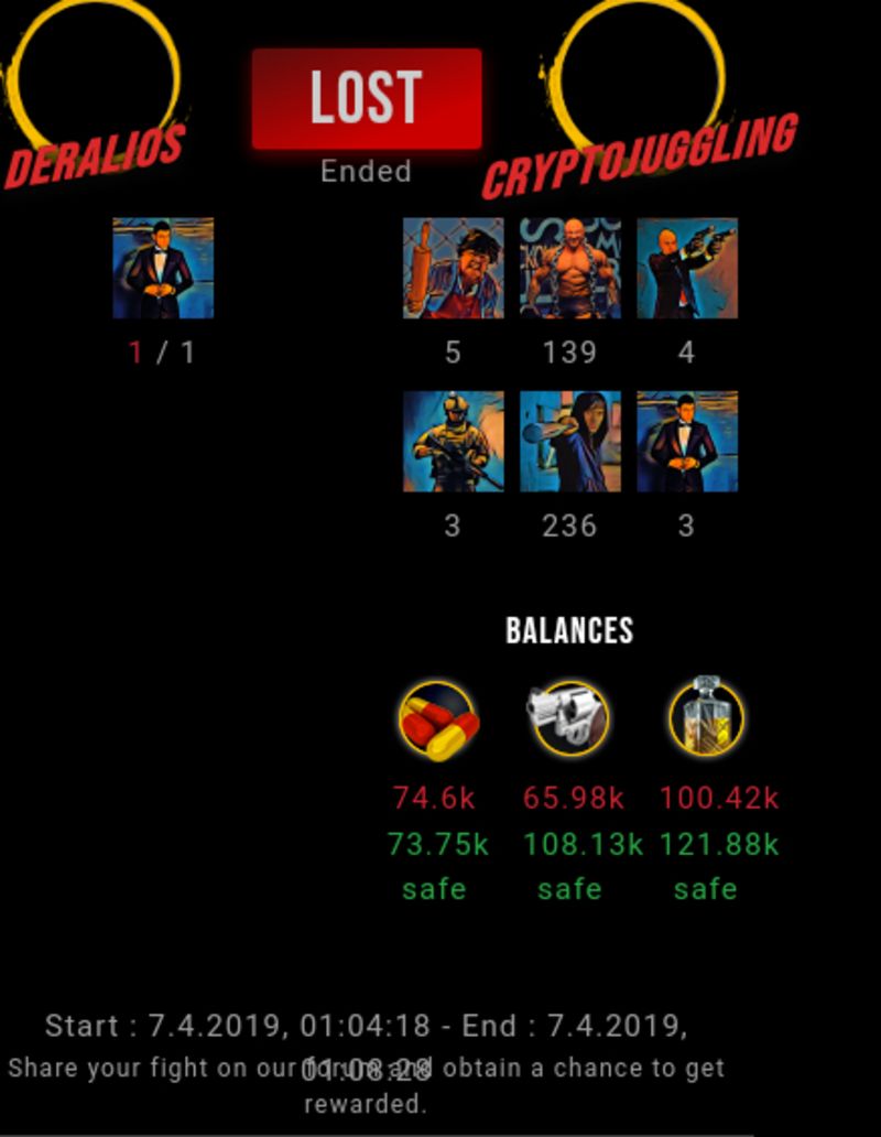 Check my latest fight ! deralios vs cryptojugglingderalios (43)in #undefined • 7 years ago #drugwars-fight #gaming #fight #dw