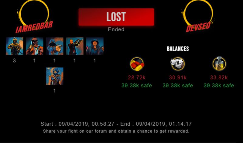 Check my latest fight ! iamredbar vs devseodevseo (36)in #undefined • 7 years ago #drugwars-fight #gaming #fight #dw
