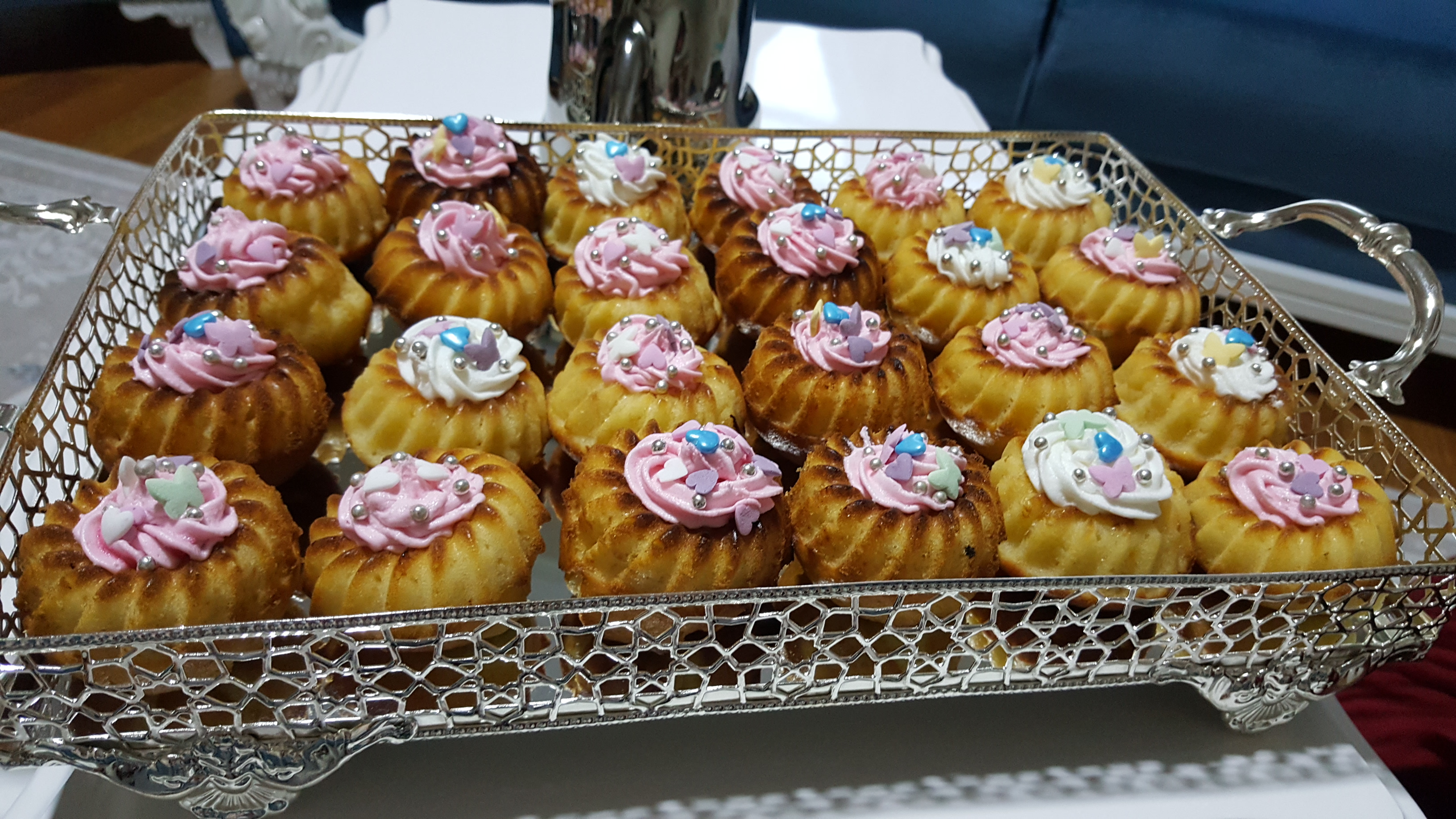 güzelce çırpalım.ardından sıvı yağ ve sütü karıstıralım. sonrasında un ve kabartma tozu ile vanilya ekleyip kek hamurumuzu hazırlayalım. muffin kalıplarımıza dökelim.180 derecede ki fırında pişirelim.Başka bir kabta kremşantiyi hazırlayıp pısen ve soğumuş keklerımizi süsleyelim. afiyet olsun.
