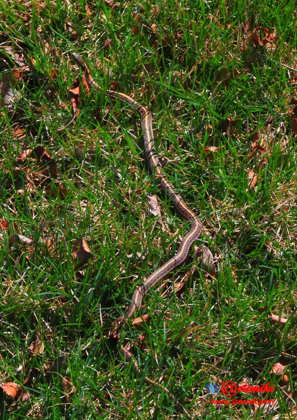 I saw a few snakes in the yard several days ago. I knew there might be a chance of seeing a snake in the grass yesterday. Sure enough, I did not have to look to hard to find one.