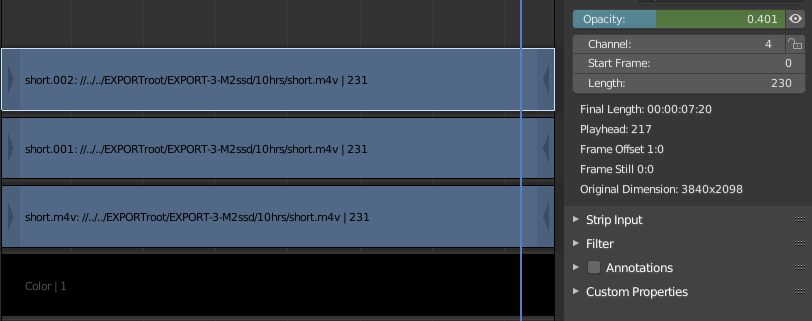 I then exported 3 segments in VP9 codec, respectively with a fade-in, clean and fade out.