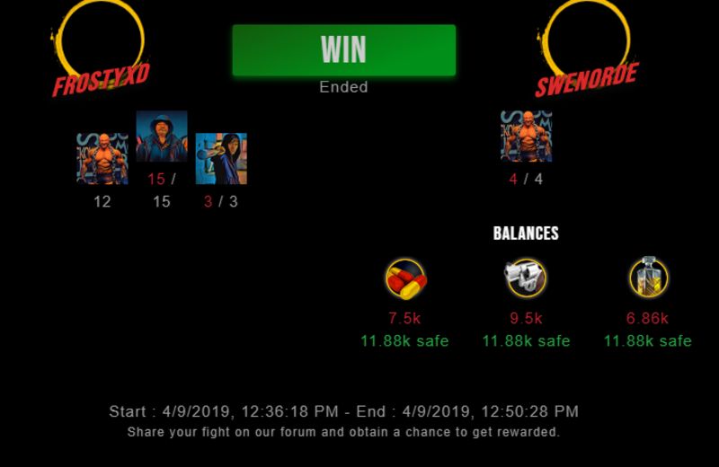 Congratulations @frostyxd ! Your fight received an upvote of 5% from the Dealer as incentive for your activity and as a gratitude for your support to the game.