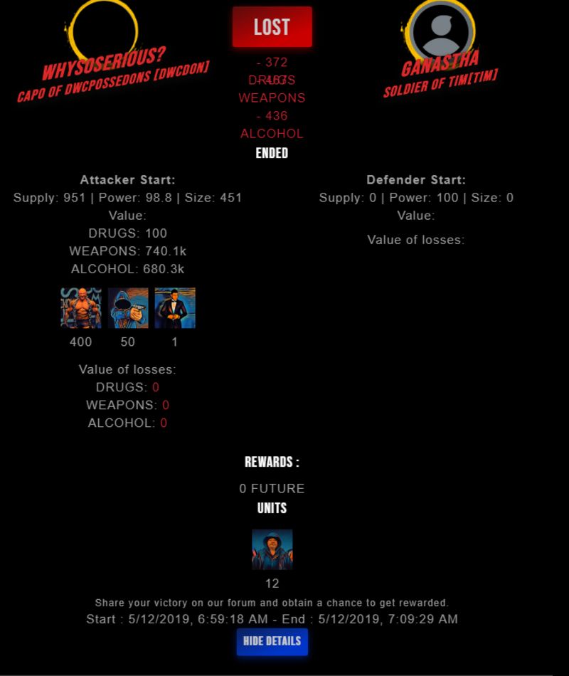 Check my latest fight ! whysoserious? vs ganasthaganastha (45)in #undefined • 7 years ago #drugwars-fight #gaming #fight #dw