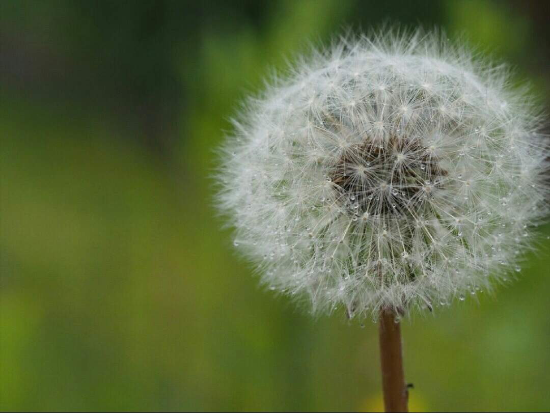Nach einem regenguss sieht man die kleinen Tröpfchen im Löwenzahn.