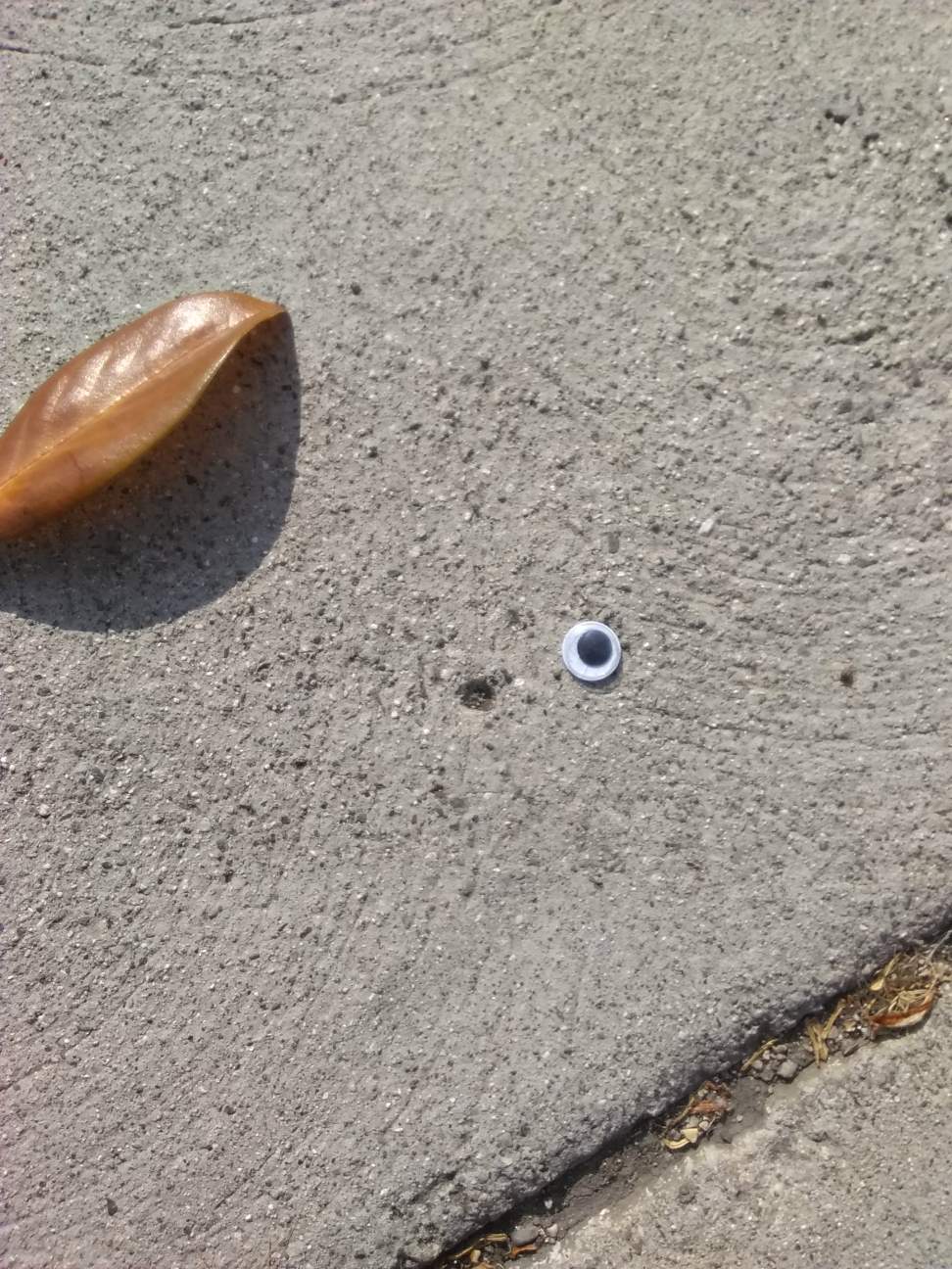 And you're saying you found that arrangement just exactly like this, randomly on the floor?! That's almost to good to be true, heh, sure you must have at least nudged these element into place like this?!? Either way, the pic is so nicely framed, it works as a whole googly character of it's own.