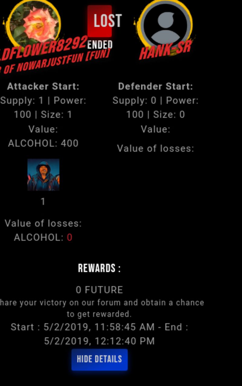 Check my latest fight ! wildflower8292 vs hank-srhank-sr (48)in #undefined • 7 years ago #drugwars-fight #gaming #fight #dw