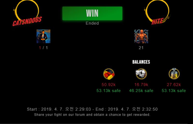 Congratulations @hite ! Your fight received an upvote of 13% from the Dealer as incentive for your activity and as a gratitude for your support to the game.