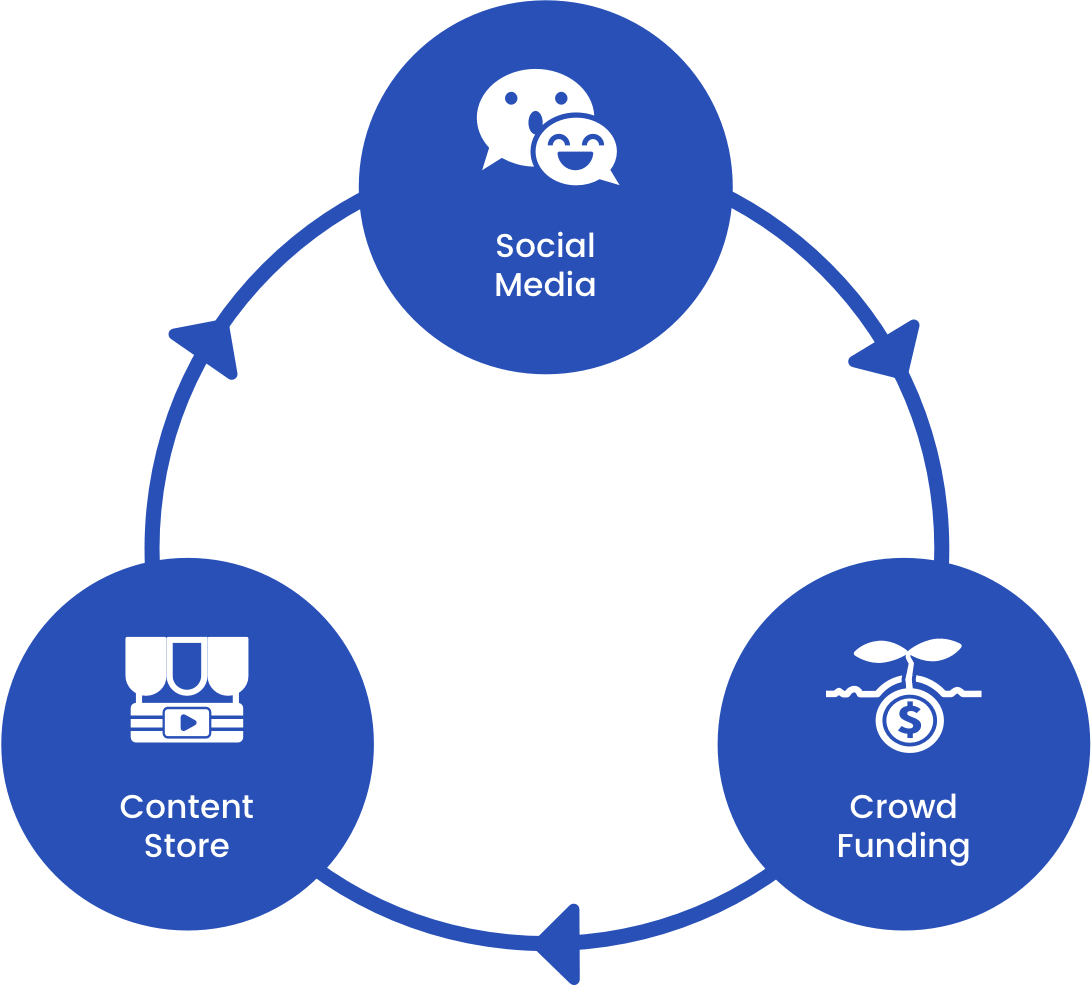 ツ Finally, the crowdfunding system has been put forward as a solution. In this system, new projects created by content producers will be able to obtain funds if deemed appropriate. For this, there is a voting system that can be purchased and conducted via blockchain.
