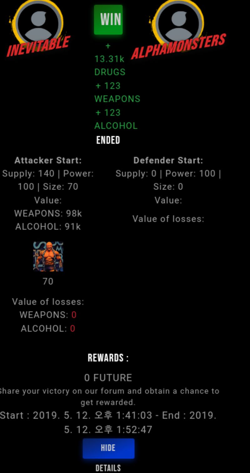 Check my latest fight ! inevitable vs alphamonstersibighit (47)in #undefined • 7 years ago #drugwars-fight #gaming #fight #dw
