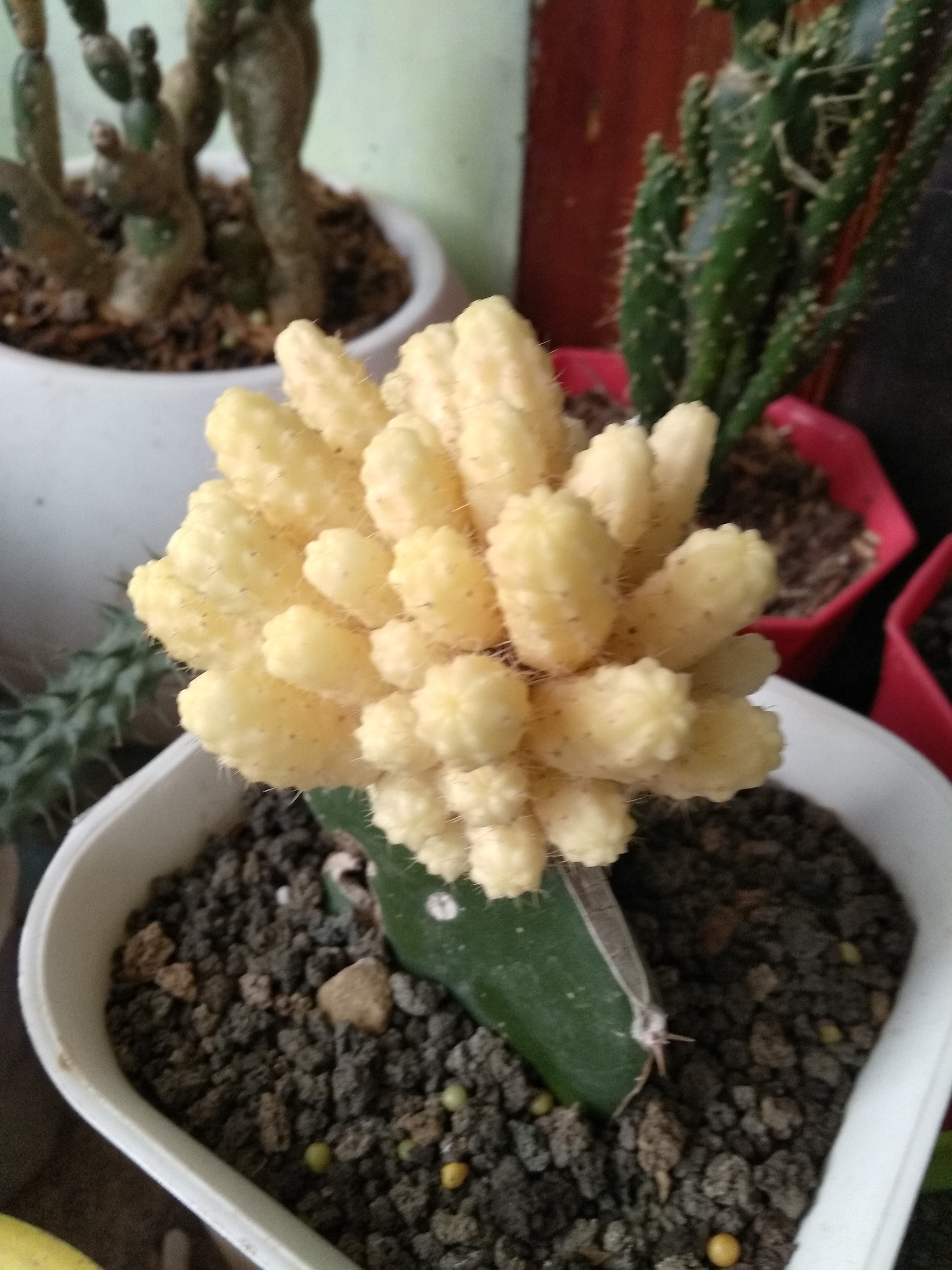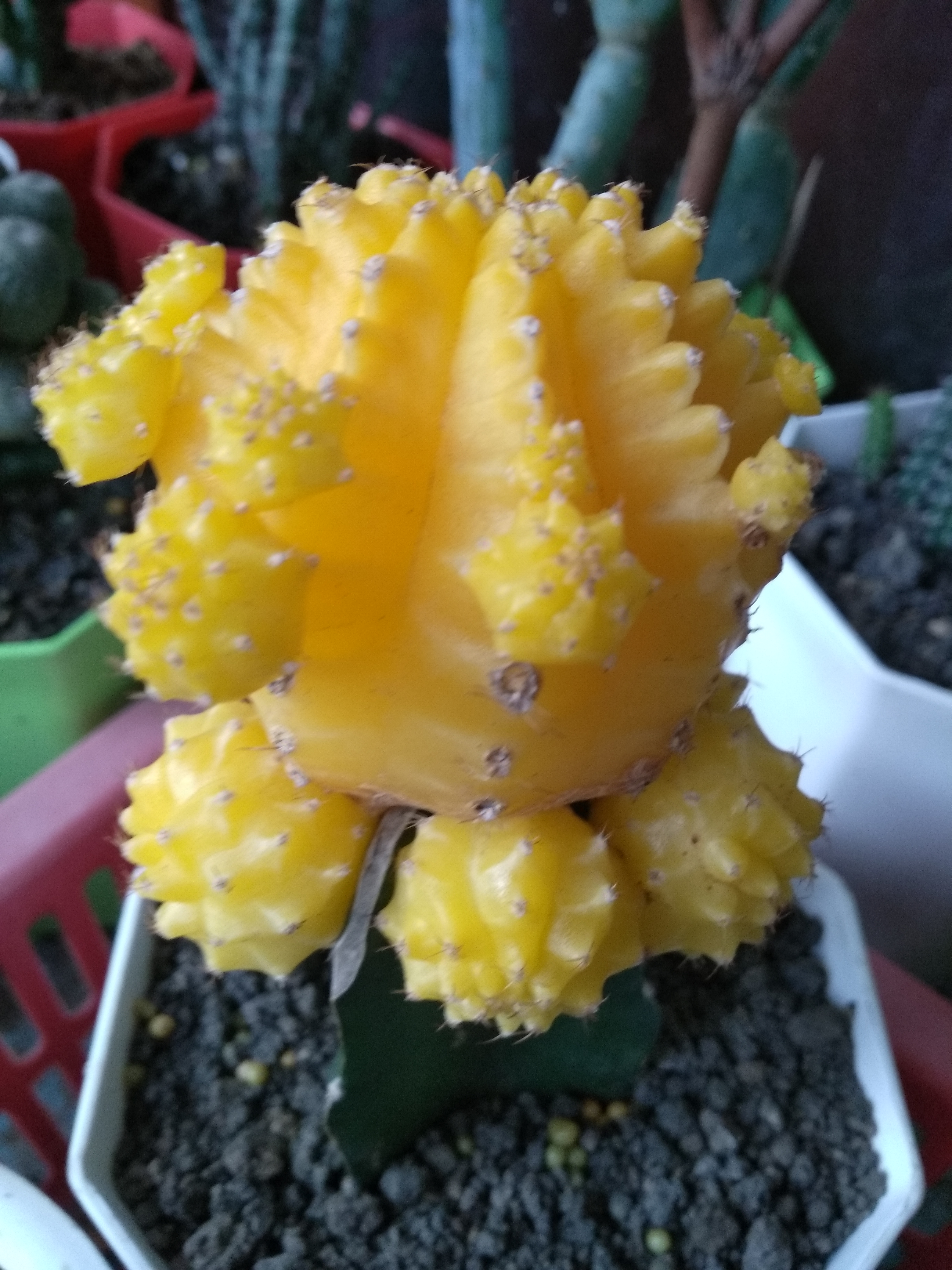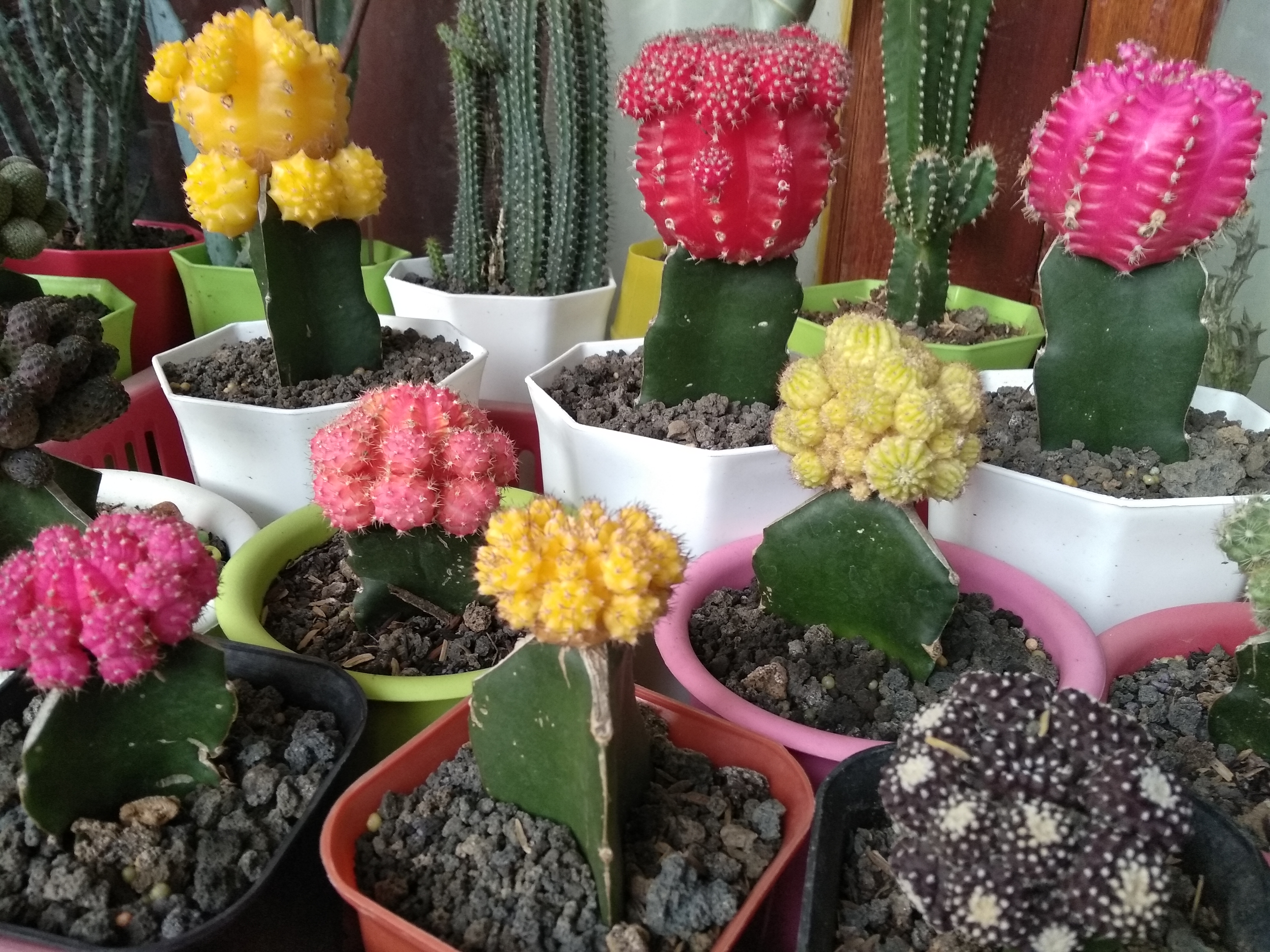 So far, I only know that the cactus flower is green, but today I see that there are other colors besides green. Maybe friends used to see it, but for me this was the first time I saw it. It turned out that my friend was getting a variety of cactus colors, buying via online. And the price bought by my friend via online is also not expensive. The flower color of this cactus is red, yellow, brown, orange and other colors and also the color is very beautiful and bright.