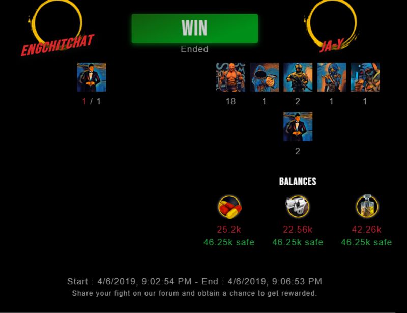 Congratulations @ja-y ! Your fight received an upvote of 10% from the Dealer as incentive for your activity and as a gratitude for your support to the game.