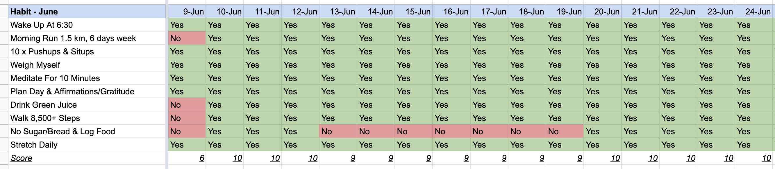 | Drink Green Juice | Yes |