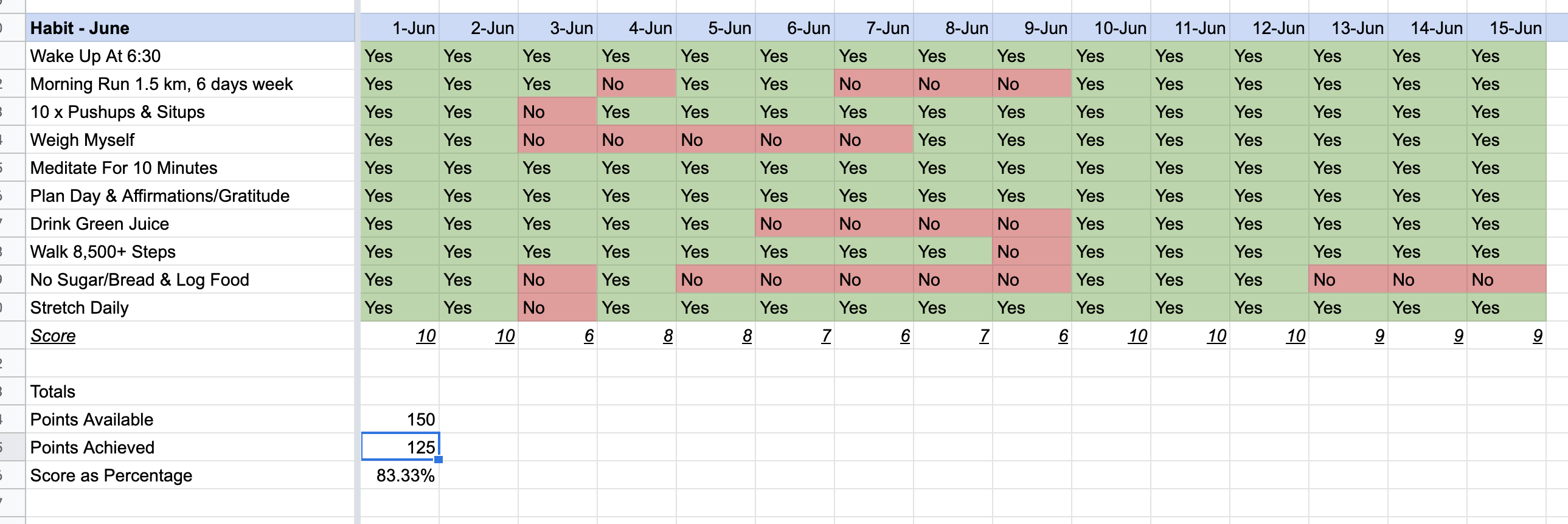 | Drink Green Juice | Yes |