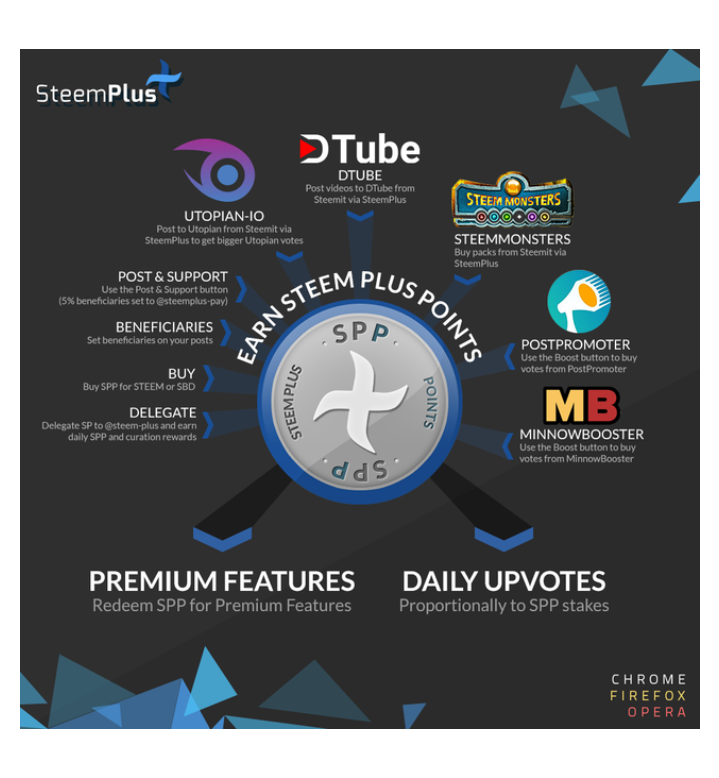 It brings over 30 novel features to your Steem experience on Steemit, Busy and Steem Monsters. As you can see above, you can also earn SPP by performing certain actions. This will allow you to redeem your SPP for premium features or hold them to receive daily @steem-plus upvotes.