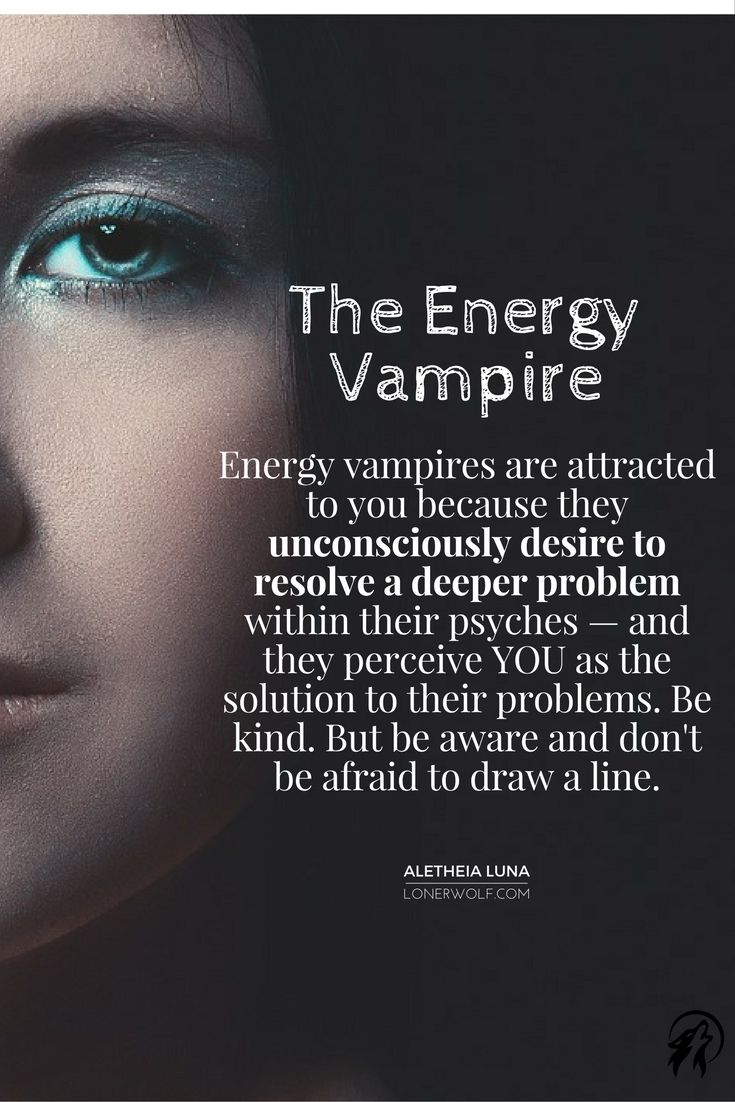 “Energy vampires prey on others because they are in pain, and their behavior is a disguised cry for help. However, the important thing to remember is that you are not responsible for resolving their issues. While you can offer help to an energy vampire, it is ultimately their responsibility to sort our their struggles.”