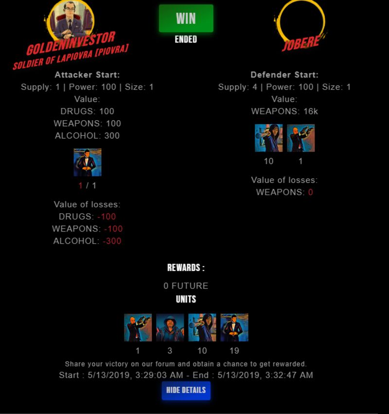 Check my latest fight ! goldeninvestor vs joberejobere (51)in #undefined • 7 years ago #drugwars-fight #gaming #fight #dw