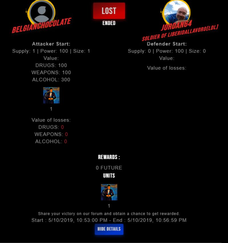 Congratulations @jordan64 ! Your fight received an upvote of 1.8% from the King Dealer as incentive for your activity and as a gratitude for your support to the game.