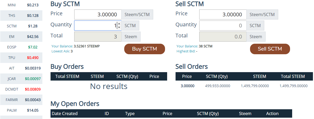 1. Anda dapat membeli 1 SCTM dengan harga 3 STEEMP di https://steem-engine.com/?p=market&t=SCTM