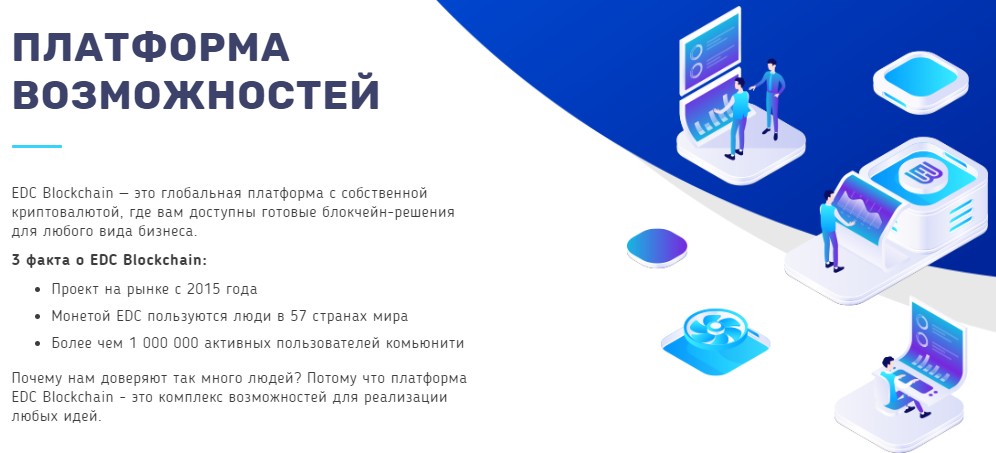 Платформа EDC Blockchain – одна из наиболее амбициозных и перспективных криптовалют этого года. В основе огромного потенциала и пользы нового проекта – подготовка не просто полезной криптовалюты, а полноценной платформы для развития, продвижения и автоматизации в работе бизнеса разного масштаба.
