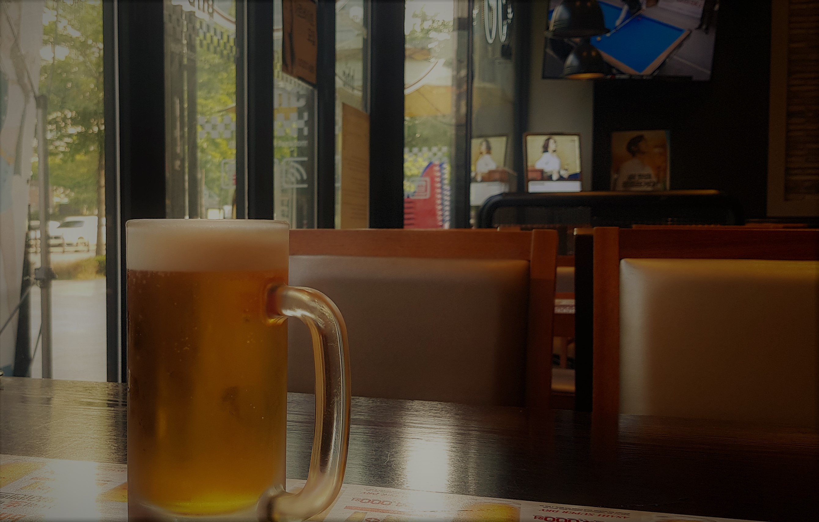 I got to the restaurant early to get a premium seat. Actually, it was still light outside when I arrived. It is light until around 8 pm these days. The game did not start until 1 am so we had a lot of waiting to do. In the end, it didn't get busy. Maybe because this restaurant is in a business area?