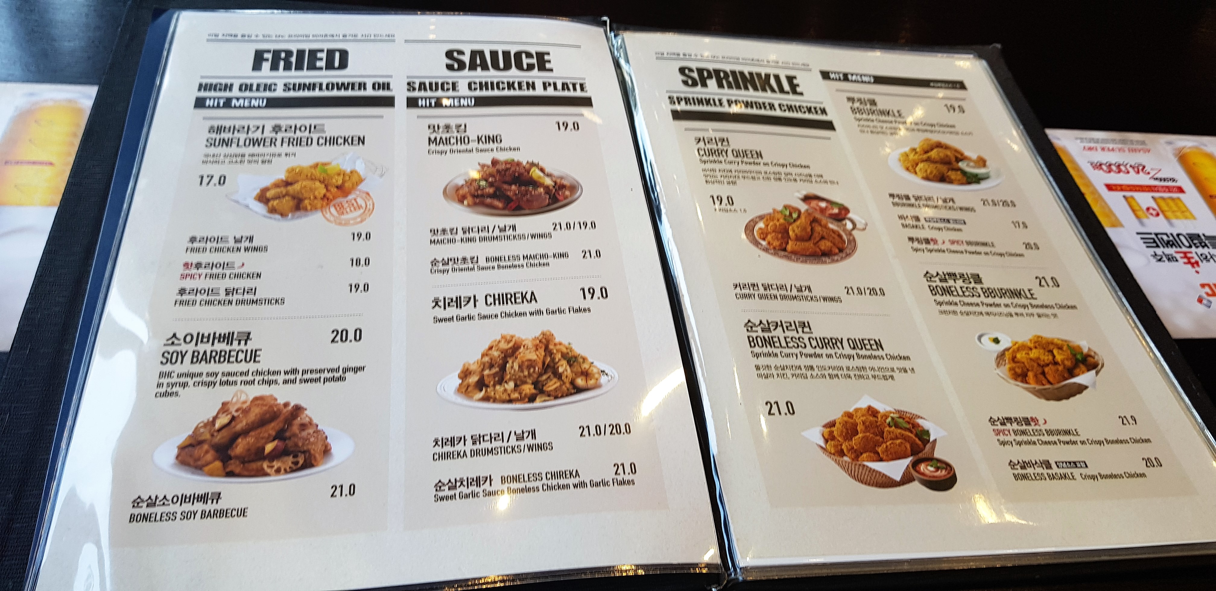 This restaurant's name is BHC which means better/best healthier choice/chicken. It's similar to KFC if you ask me and I don't believe that using sunflower oil suddenly makes fried chicken healthier. I guess it is more healthy than using pork fat or soy bean oil. Anyway, this is a chain restaurant so there are locations all over Korea. The one I went to happens to be near Gasan Digitial Complex which is where Seoul Subway Lines 1 and 7 meet south of the river.