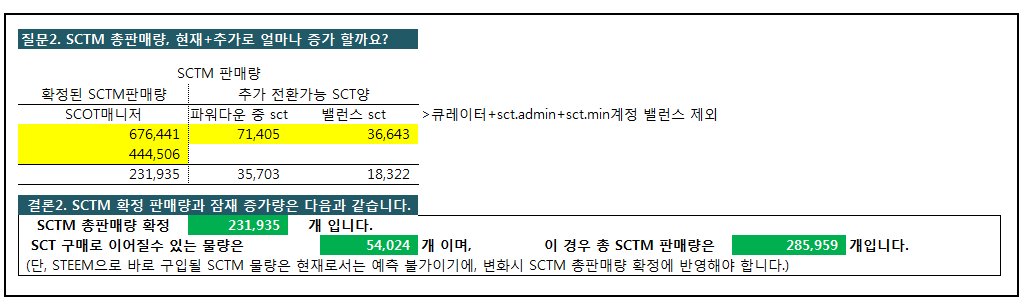 또한, sct로 sctm을 사는 경우 파워다운 물량과 현재 밸런스 물량이