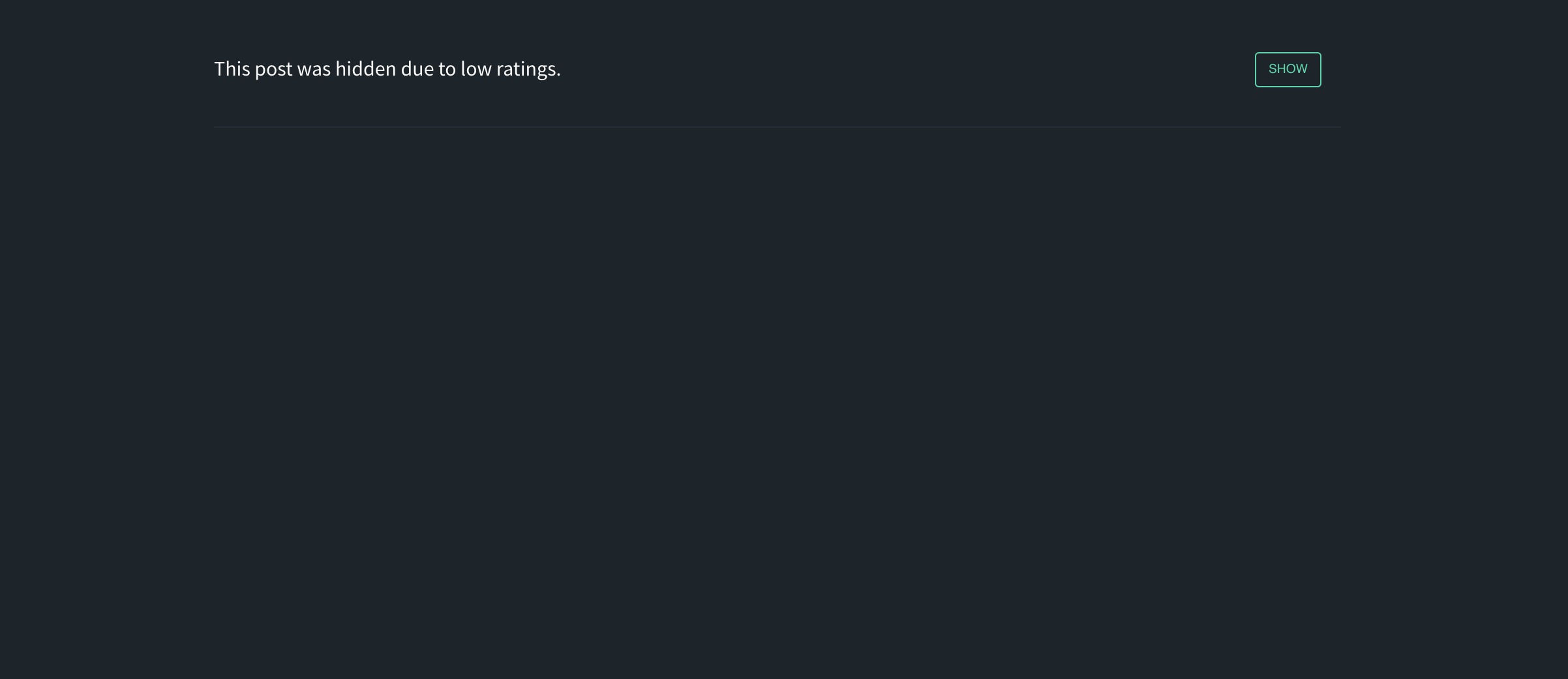 If you see large accounts downvoting content based on personal issues with the author, I encourage you to upvote that content and counter the downvote. Also, I'd like to see us make a change to Condenser (the Steemit front end) which allows an "I'm an adult" setting which doesn't hide downvoted posts and/or allows accounts to be whitelisted from being hidden.