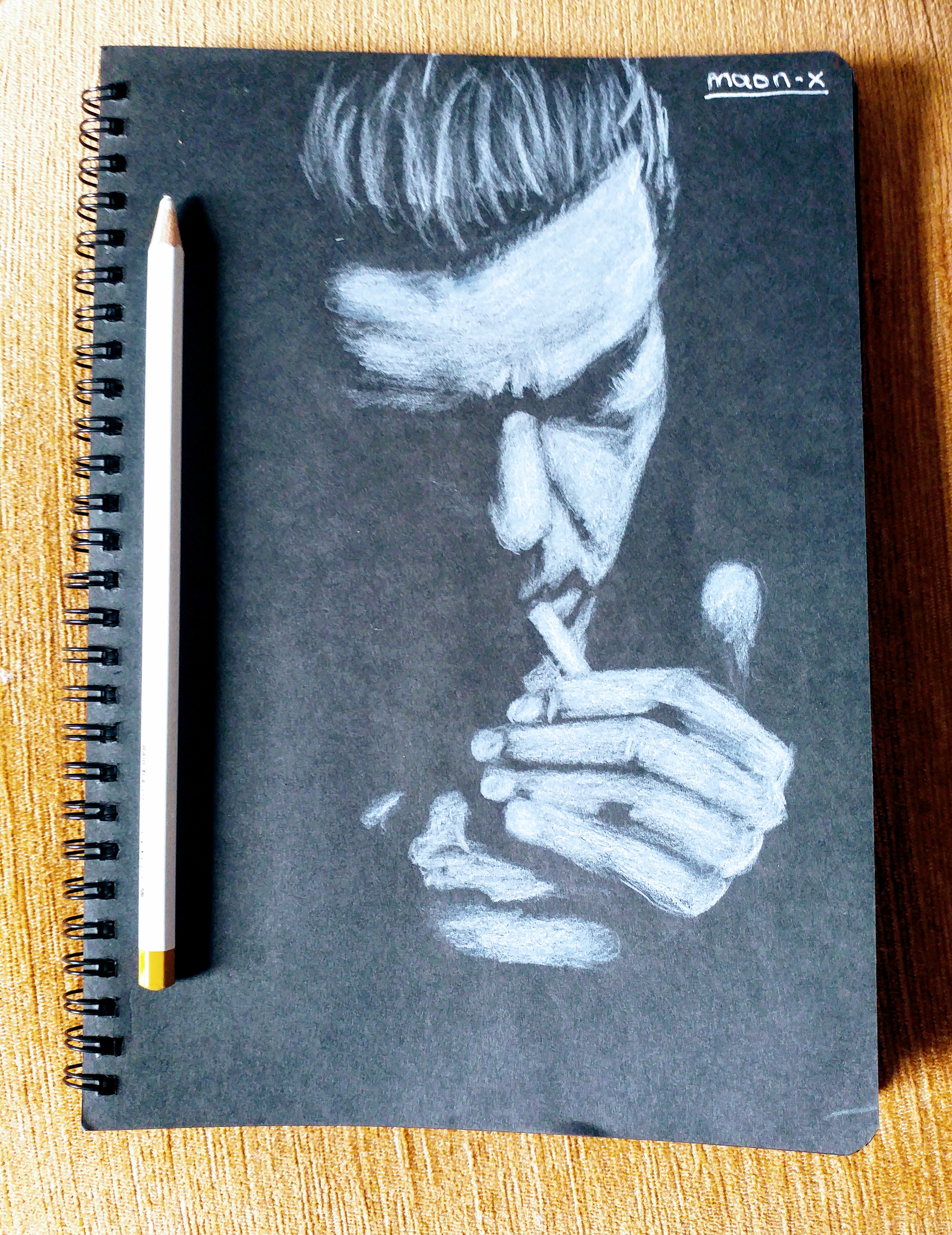 siyah defter üzerine yapılan bu çizim çok güzel olmuş, adam da karizmatikmiş:)