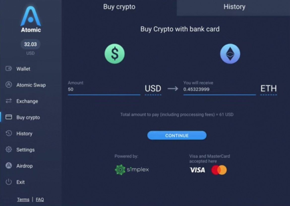 Кошелек Atomic Wallet позволяет легко, доступно и главное быстро осуществить покупку криптовалюты Ethereum.