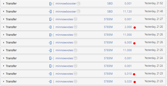 On April 27th and 28th, the bot made some unexpected transfers. This was the last thing which motivated me to start rewriting the bot software to a new version. In the next few days after the testing complete, I will replace the bot infrastructure under minnowvotes.