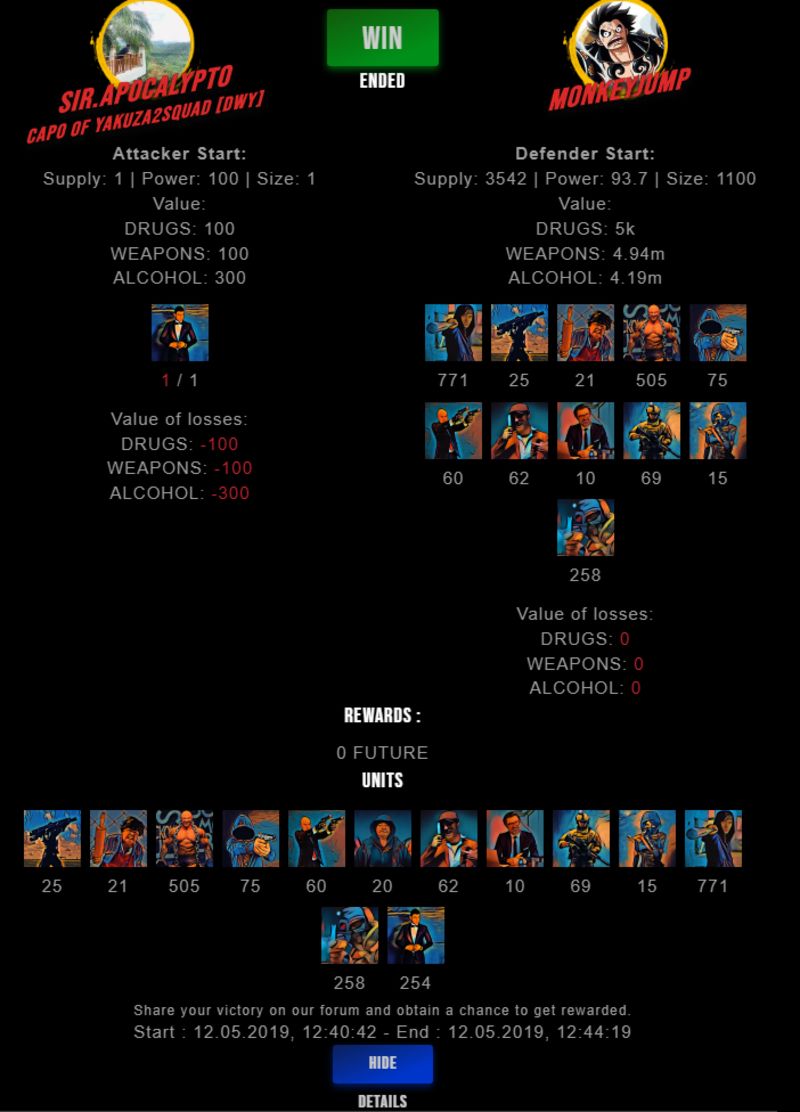 Check my latest fight ! sir.apocalypto vs monkeyjumpmonkeyjump (47)in #undefined • 7 years ago #drugwars-fight #gaming #fight #dw