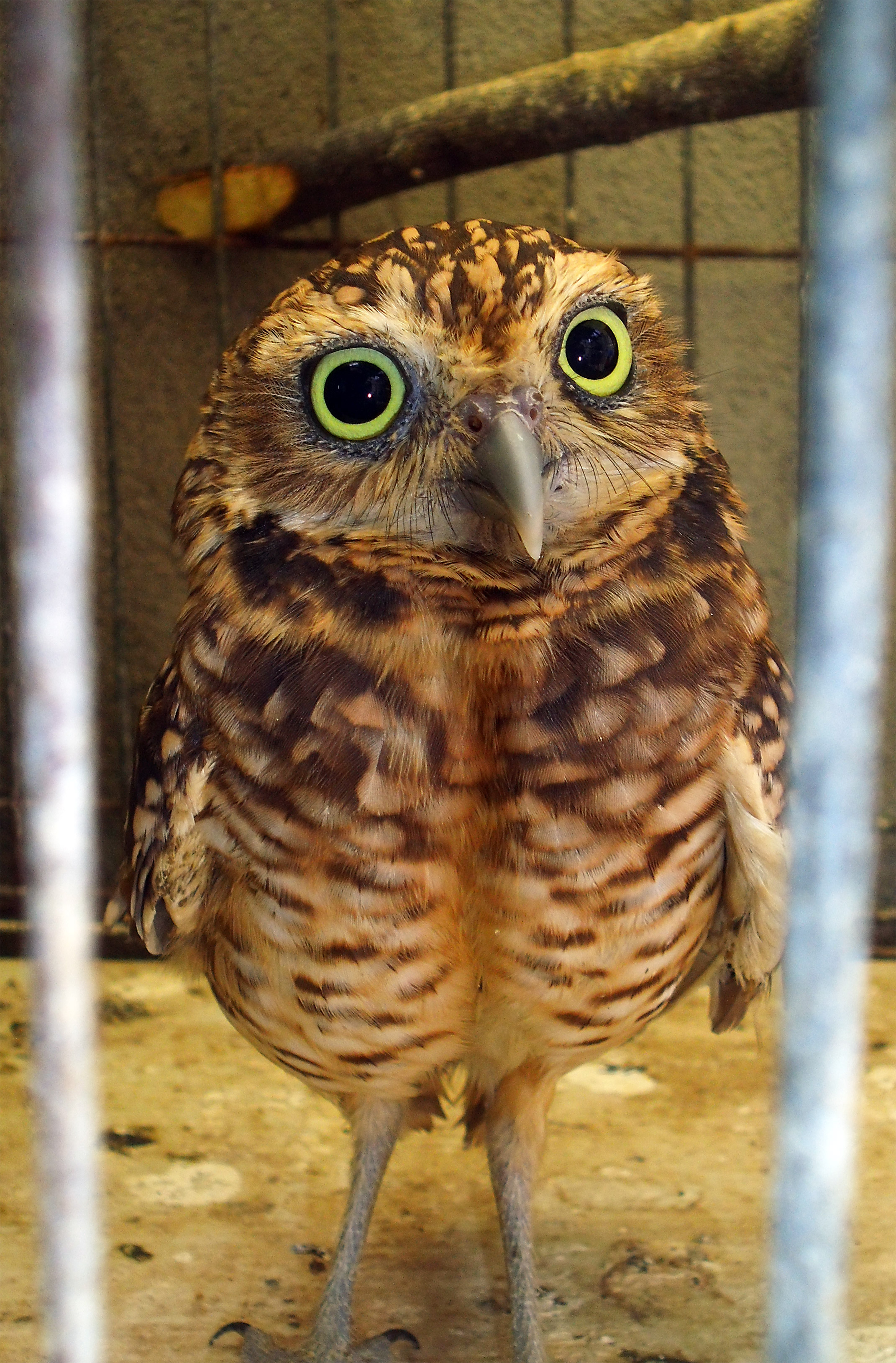 Su nombre científico es Athene cunicularia, pero su nombre doméstico era Mochuelo. Es una lechuza que tenía mi papá, el cual es cazador y le gusta criar animales. Aunque los cuida bien no me agrada verlos encerrados.