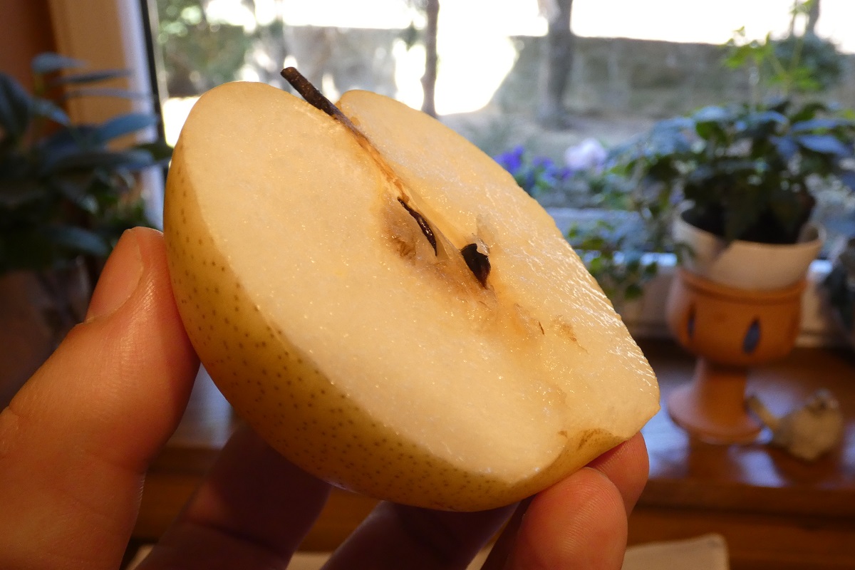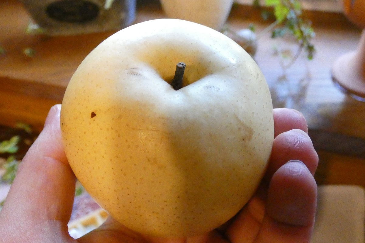 Jest to Azjatycka gruszka, znana jako chińska gruszka nashi, często przypomina jabłko . Spotykana w Chinach, Korei, Japonii i na Tajwanie. W smaku słodka i chrupka, soczysta, ciekawe połączenie gruszki z jabłkiem. Według mnie bardziej delikatna w smaku niż gruszki europejskie, idealna do deserów jak i dań wytrawnych.