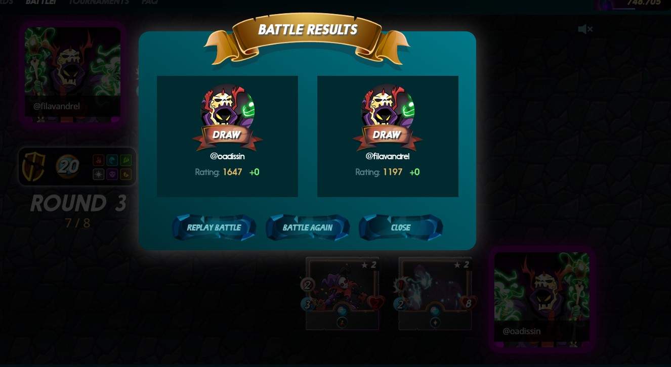 I succeed to capture some of the results of battle when it was a draw.