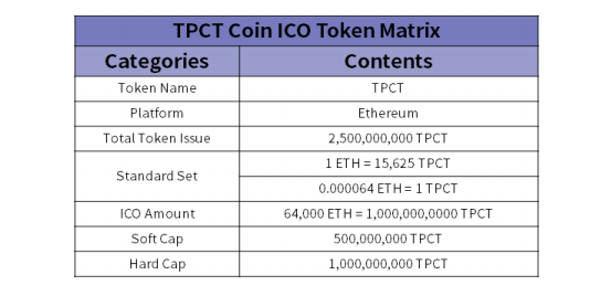 ICO amount: 64,000ETH = 1,000,000,000 TPCT