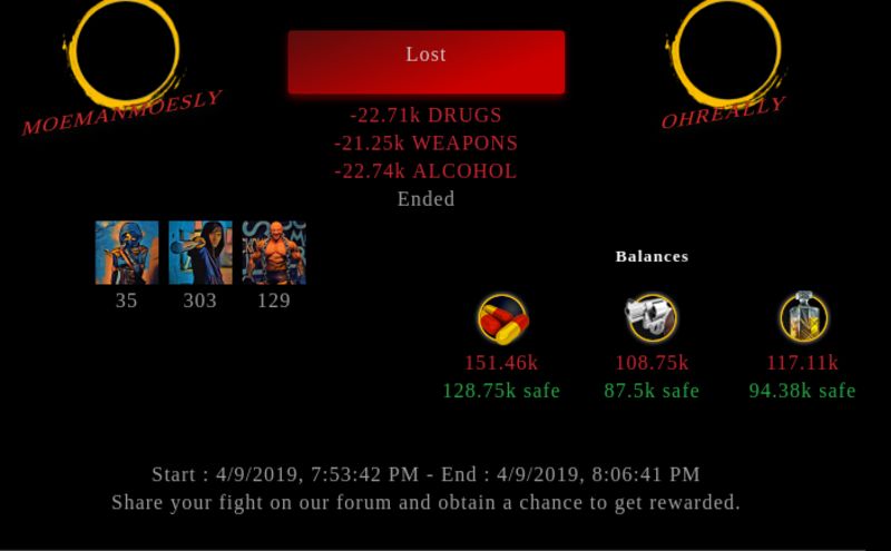 Check my latest fight ! moemanmoesly vs ohreallyohreally (43)in #undefined • 7 years ago #drugwars-fight #gaming #fight #dw