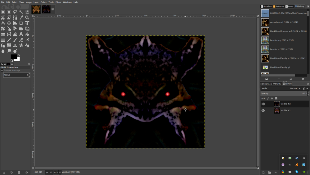 And rearranged the order a bit and used the default Blend functionality of GIMP to create a GIF.
