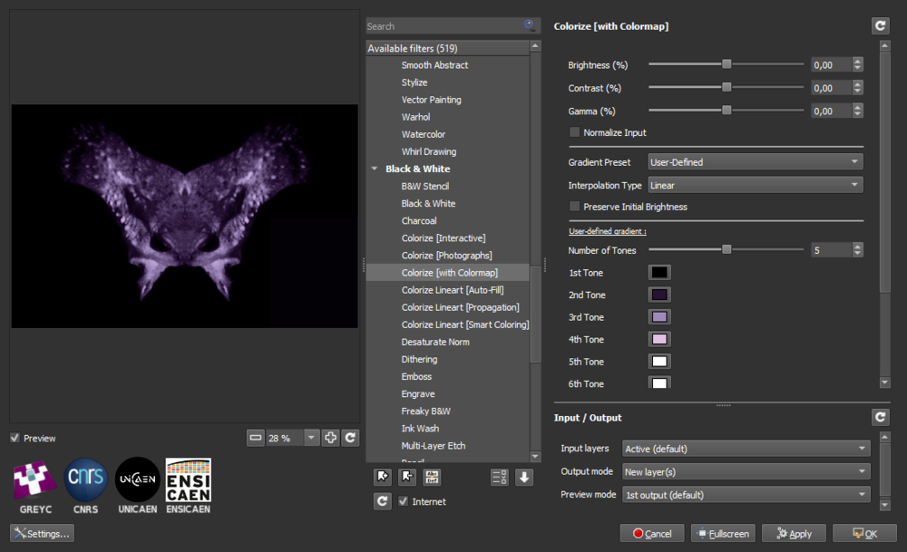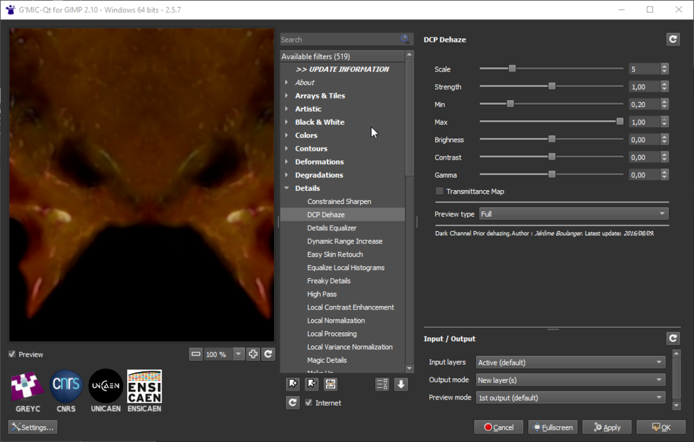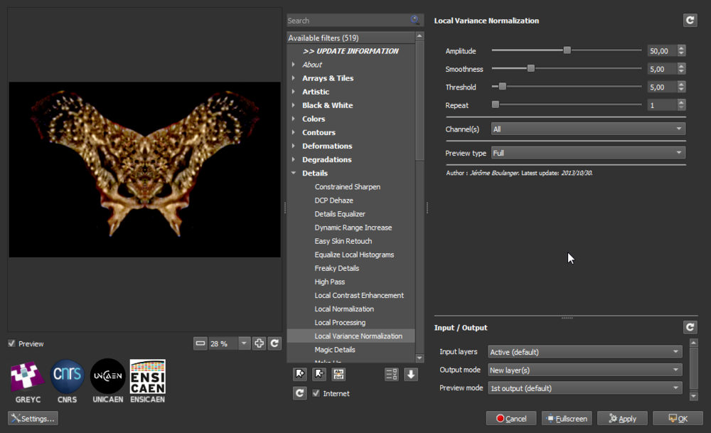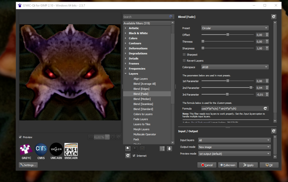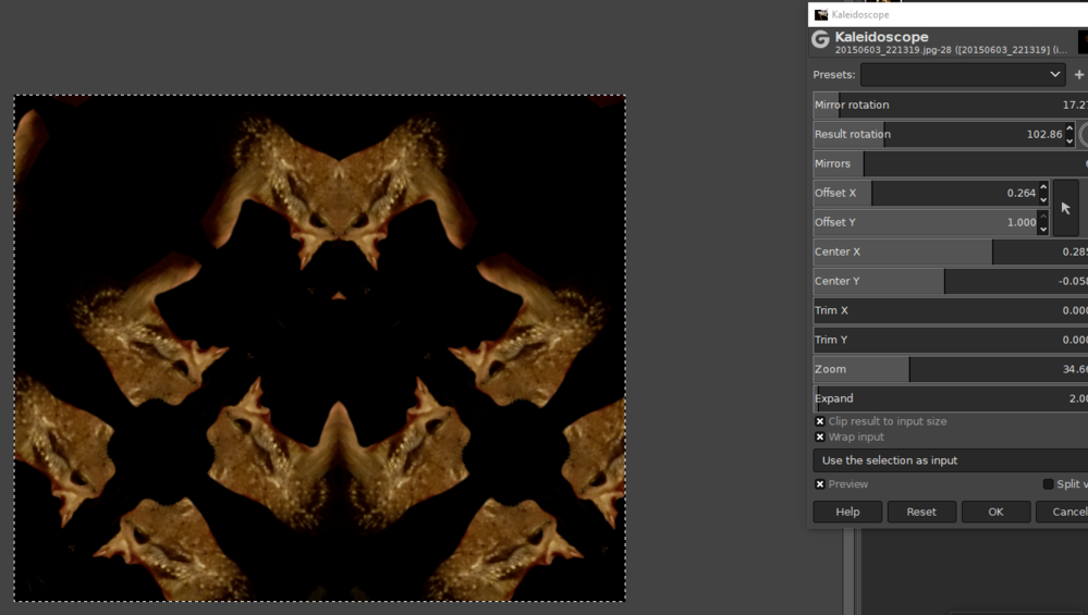 I then used the GIMP G'MIC-qt plugin's Blend[fade] effect to combine the different images using a circular fading pattern.