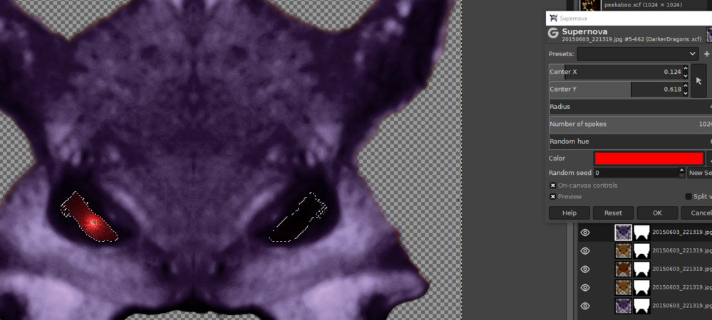 I did some editing of the eyes, by selecting a specific region of the eye and entering a Supernova effect into it: