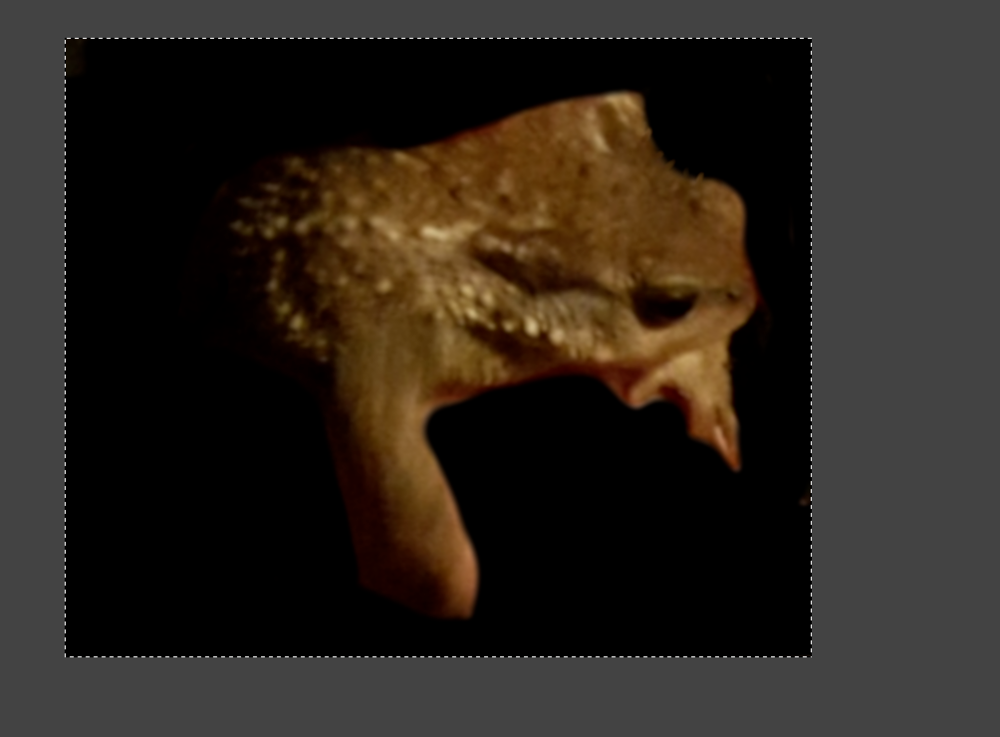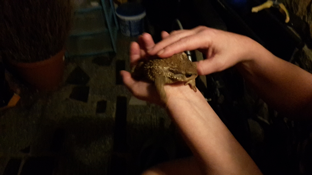 To create this little horrifying dragonling, I started out, I kid you not, with this image taken by my sister, Marie, of a toad that's been visiting/living in my mothers garden for at least a decade or so: