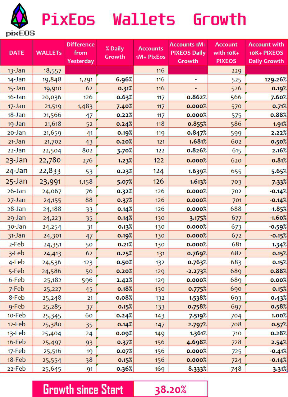 PIXEOS token wallet growth chart, thanks to Corts for providing these: