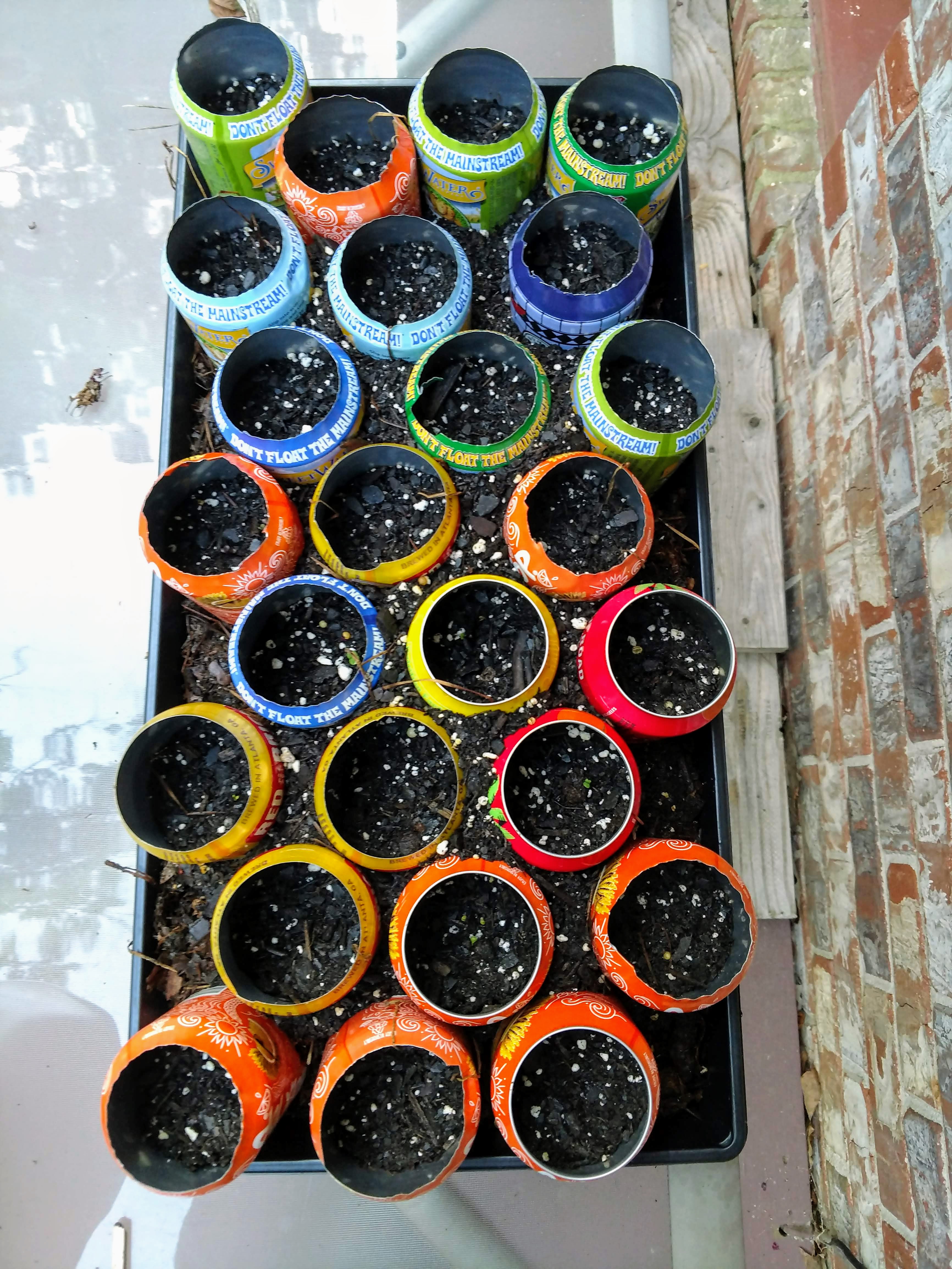 The oregano is still holding up well, but the dill and parsley ran its course. The basil and cilantro (coriander) that we tried planting never took, so it's about time to try a new round of herbs. We have some new seedlings started in potting soil and recycled beer cans. @dksart was smart this time and took a photo of what he planted, though he hasn't shared it with me yet so I couldn't tell you! He's outside right now working away some more while I type this up. 😉