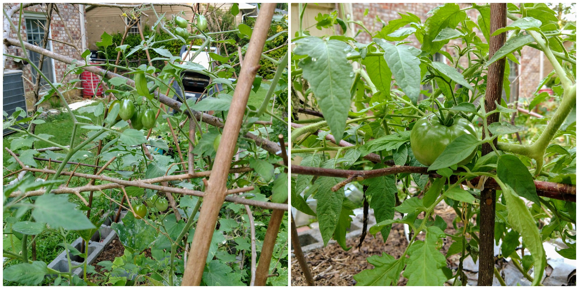 The cherry tomatoes have done alright. We still have some of those growing. The only problem with those is that you end up getting a few at a time, not many all at once to really make a meal out of. Good thing they make a great snack. The larger tomatoes have done just ok, but never seem to ripen on the vine for us. A few of them have ripened up after plucking them once I set them next to the bananas for a couple of days, and if not we have put the green ones in some different dishes.